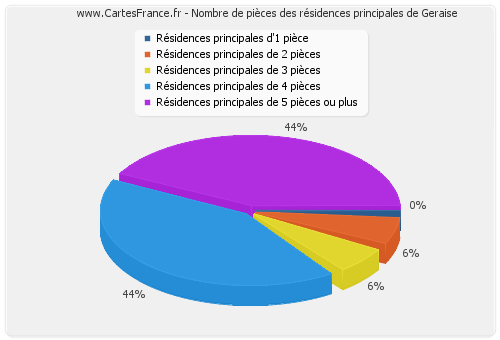Nombre de pièces des résidences principales de Geraise en 2007 :