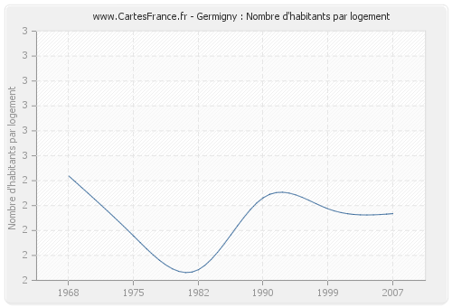 - Nombre d'habitants moyen par logement de Germigny en 2007 : 2,27