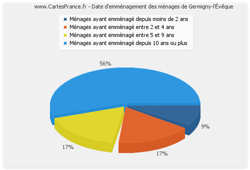 - Nombre de ménages de Germigny-l'Évêque ayant emménagé depuis 10 ans ou plus : 260