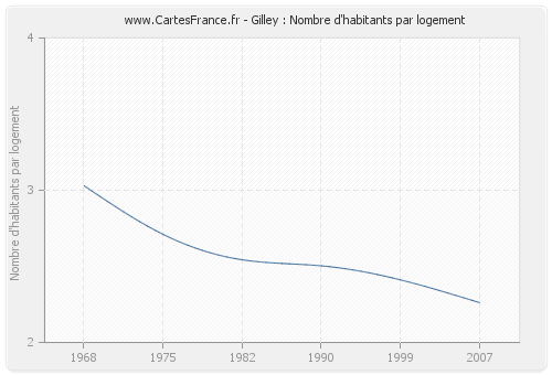- Nombre d'habitants moyen par logement de Gilley en 1968 : 3,03