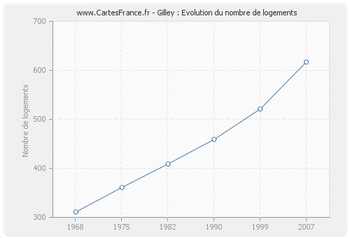 Historique du nombre de logements de Gilley de 1968 à 2007 :