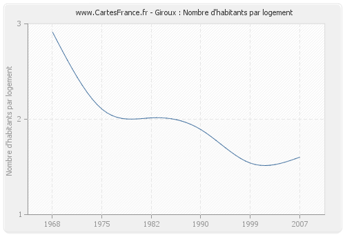 - Nombre d'habitants moyen par logement de Giroux en 2007 : 1,60