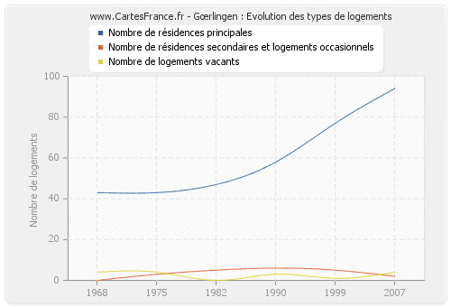 - Nombre de résidences principales de Gœrlingen en 2007 : 94