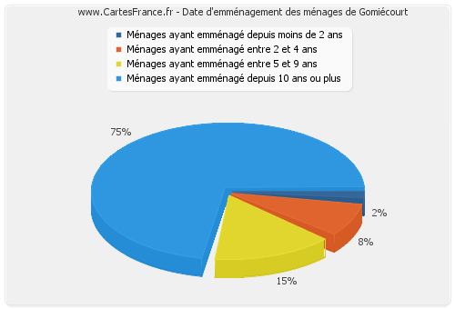 - Nombre de ménages de Gomiécourt ayant emménagé depuis 10 ans ou plus : 45