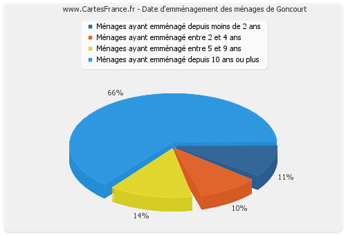 - Nombre de ménages de Goncourt ayant emménagé depuis 10 ans ou plus : 81
