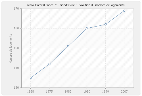 Historique du nombre de logements de Gondreville de 1968 à 2007 :