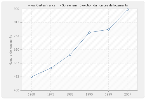 Historique du nombre de logements de Gonnehem de 1968 à 2007 :
