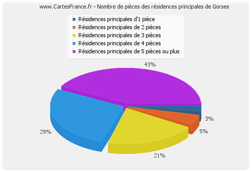 - Nombre de résidences principales de Gorses de trois pièces : 32