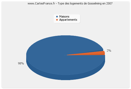 Les logements de Gosselming étaient composées en 2007 de 230 maisons et 5 appartements.
