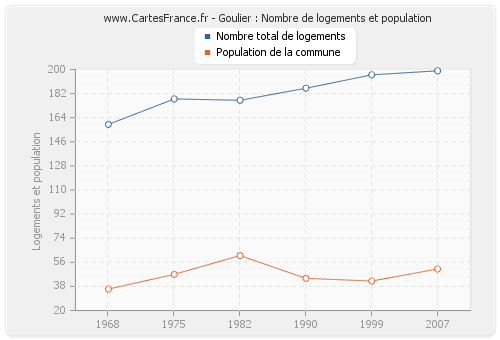 Historique du nombre de logements de Goulier de 1968 à 2007 :