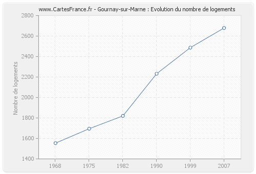Historique du nombre de logements de Gournay-sur-Marne de 1968 à 2007 :