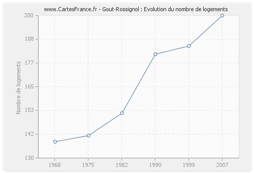 Historique du nombre de logements de Gout-Rossignol de 1968 à 2007 :