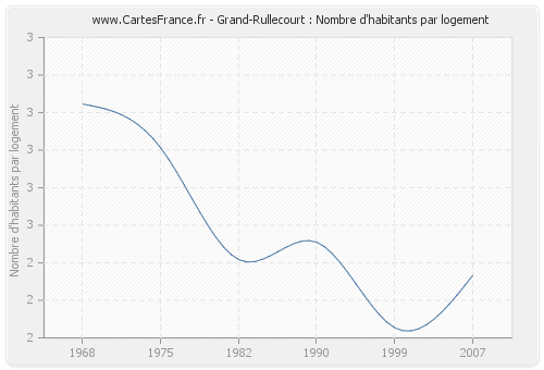 - Nombre d'habitants moyen par logement de Grand-Rullecourt en 2007 : 2,37