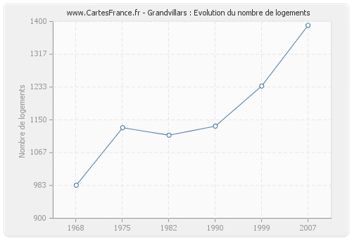 Historique du nombre de logements de Grandvillars de 1968 à 2007 :