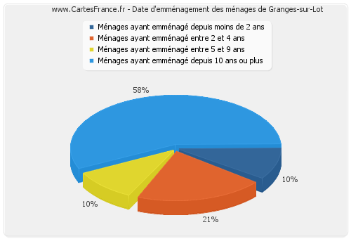 - Nombre de ménages de Granges-sur-Lot ayant emménagé depuis 10 ans ou plus : 146