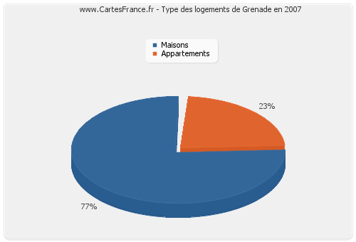 En 2007 les logements de Grenade étaient composés de 2 853 résidences principales, 22 résidences secondaires ou occasionnels ainsi que 162 logements vacants.