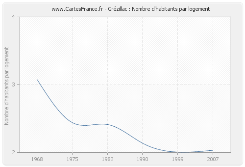 - Nombre d'habitants moyen par logement de Grézillac en 2007 : 2,03