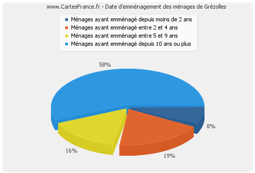 - Nombre de ménages de Grézolles ayant emménagé depuis 10 ans ou plus : 69