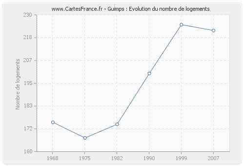 Historique du nombre de logements de Guimps de 1968 à 2007 :