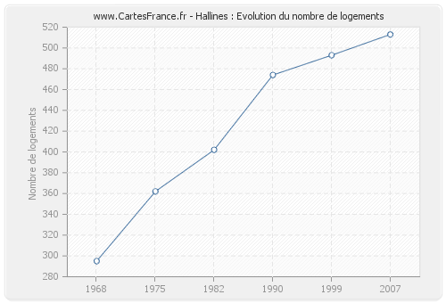 Historique du nombre de logements de Hallines de 1968 à 2007 :