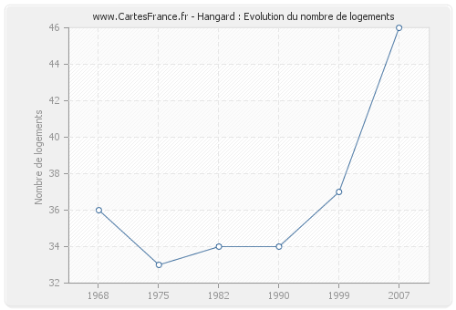 Le nombre de logements de Hangard était de 46 en 2007, 37 en 1999, 34 en 1990, 34 en 1982, 33 en 1975 et 36 en 1968.