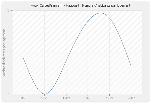 - Nombre d'habitants moyen par logement de Haucourt en 1999 : 2,96