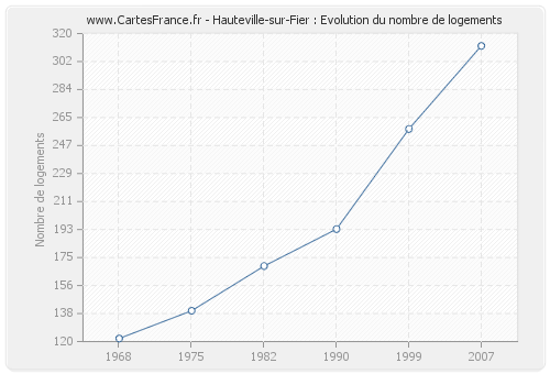 Historique du nombre de logements de Hauteville-sur-Fier de 1968 à 2007 :