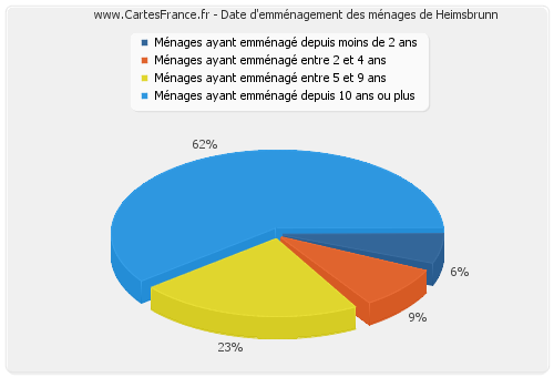 - Nombre de ménages de Heimsbrunn ayant emménagé depuis 10 ans ou plus : 321