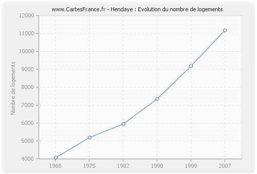 Historique du nombre de logements de Hendaye de 1968 à 2007 :