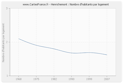 - Nombre d'habitants moyen par logement de Henrichemont en 2007 : 1,62