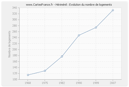 Historique du nombre de logements de Hériménil de 1968 à 2007 :