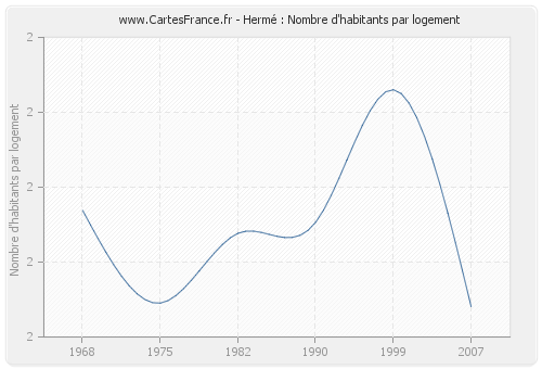 - Nombre d'habitants moyen par logement de Hermé en 1968 : 1,71