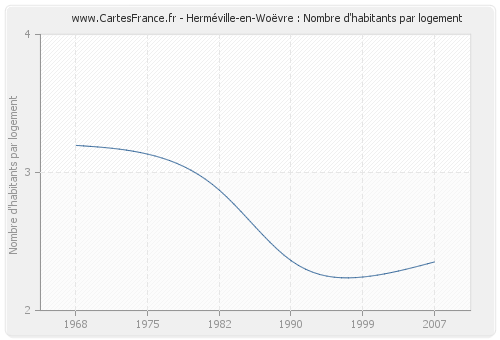 - Nombre d'habitants moyen par logement de Herméville-en-Woëvre en 2007 : 2,35