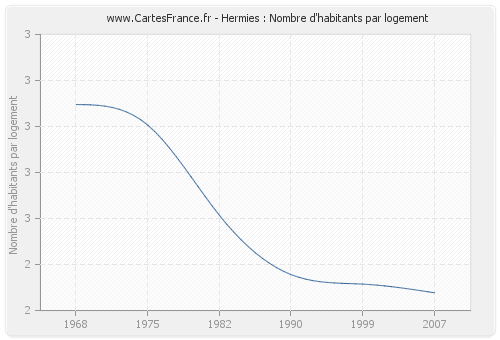 - Nombre d'habitants moyen par logement de Hermies en 2007 : 2,34