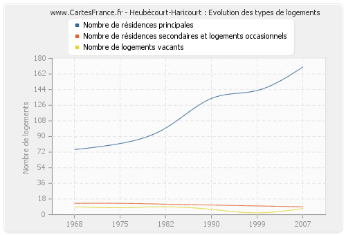 - Nombre de résidences principales de Heubécourt-Haricourt en 2007 : 170