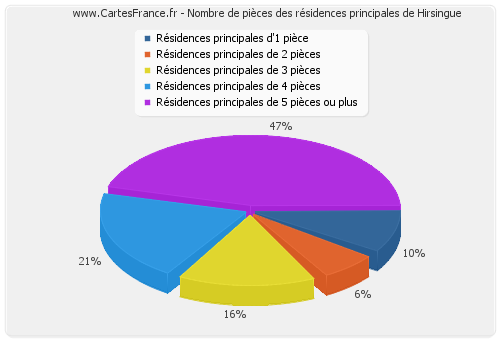 - Nombre de résidences principales de Hirsingue de cinq pièces et plus : 421
