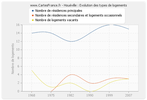 Historique du nombre de logements de Houéville de 1968 à 2007 :