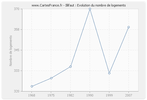Le nombre de logements d'Illifaut était de 359 en 2007, 331 en 1999, 370 en 1990, 335 en 1982, 328 en 1975 et 323 en 1968.