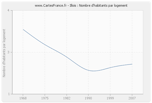 - Nombre d'habitants moyen par logement d'Illois en 1968 : 3,32