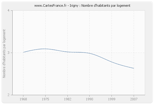 La Ville d'Irigny avait en 2007 une moyenne de 2,63 habitants par logement.
