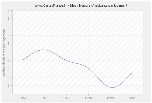 - Nombre d'habitants moyen par logement d'Irles en 2007 : 2,25