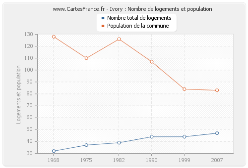 Le nombre de logements d'Ivory était de 47 en 2007, 44 en 1999, 44 en 1990, 39 en 1982, 37 en 1975 et 32 en 1968.