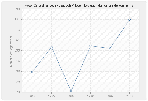 Historique du nombre de logements d'Izaut-de-l'Hôtel de 1968 à 2007 :