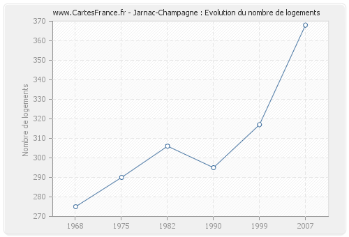 Historique du nombre de logements de Jarnac-Champagne de 1968 à 2007 :