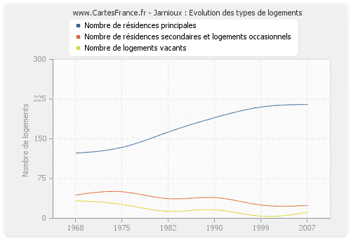 - Nombre de résidences principales de Jarnioux en 2007 : 215