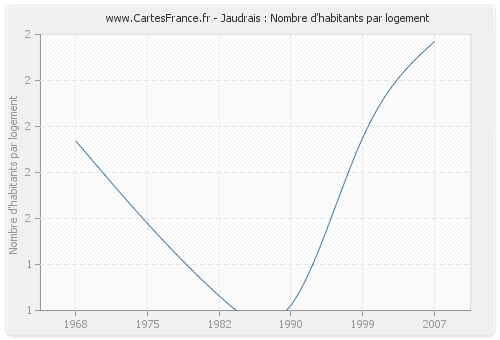 - Nombre d'habitants moyen par logement de Jaudrais en 2007 : 1,98