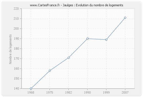 Historique du nombre de logements de Jaulges de 1968 à 2007 :
