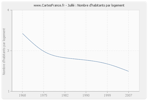 - Nombre d'habitants moyen par logement de Juillé en 2007 : 1,74