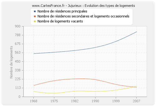 Historique du nombre de logements de Jujurieux de 1968 à 2007 :