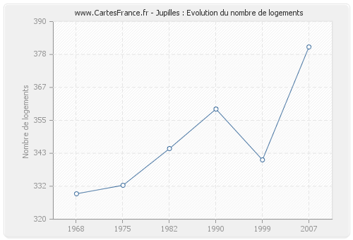 Historique du nombre de logements de Jupilles de 1968 à 2007 :